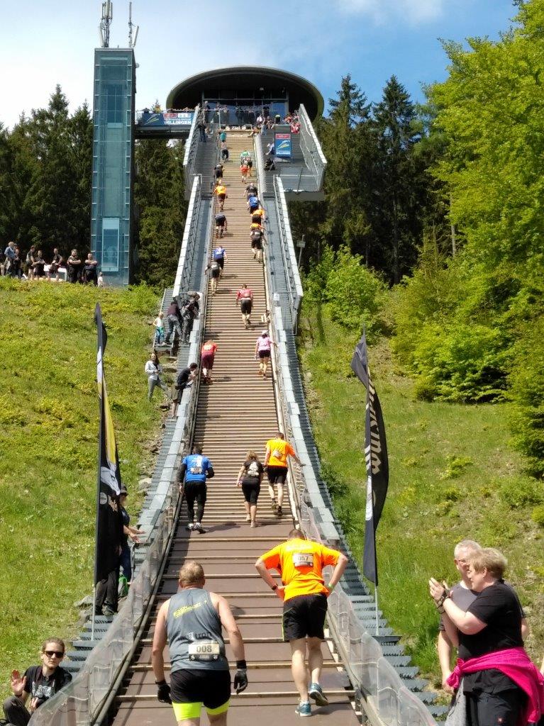 Für großen Spaß sorgten die Staffeln der Jugendlichen, Damen, Herren sowie im Mixed. Bei den Jugendlichen gewann das Dreier-Team „Tick, Trick und Track“ in 3:33,32 Minuten souverän - die Schnapszahl wurde nur um eine Hundertstel verfehlt. Bei den Damen siegte die „Confetti Crew“ (5:56,06 Minuten). Und bei den Männern ließen sich die „K1 Bergfexe“ in 3:30,36 Minuten den Sieg nicht nehmen. In der Rekordzeit von 3:21,74 waren bei den Jugend-Staffeln „Die jungen Wilden“ nicht zu schlagen. Insgesamt gingen 45 Staffeln ins Rennen. Beim zweiten Mühlenkopf-Kraxler 2019 gingen auch etliche Starter aus Willingen und dem Upland ins Rennen. Schon jetzt freuen sich alle Aktiven, die die Veranstaltung mit einem geselligen Zusammensein ausklingen lassen, auf die Neuauflage 2020, die am Sonntag, 7. Juni an der Mühlenkopfschanze geplant ist.
