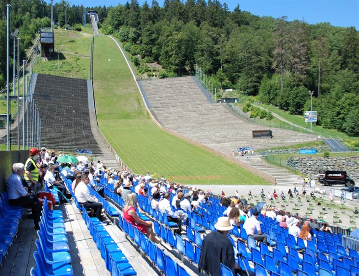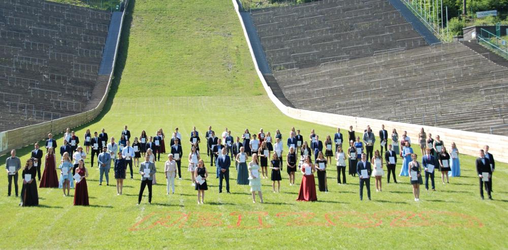 Wo noch im Februar die Skispringer auf Weitenjagd gingen und Tausende von Zuschauern die Ränge füllten, erhielten am Freitag 77 erfolgreiche Schülerinnen und Schüler ihr Abiturzeugnis.