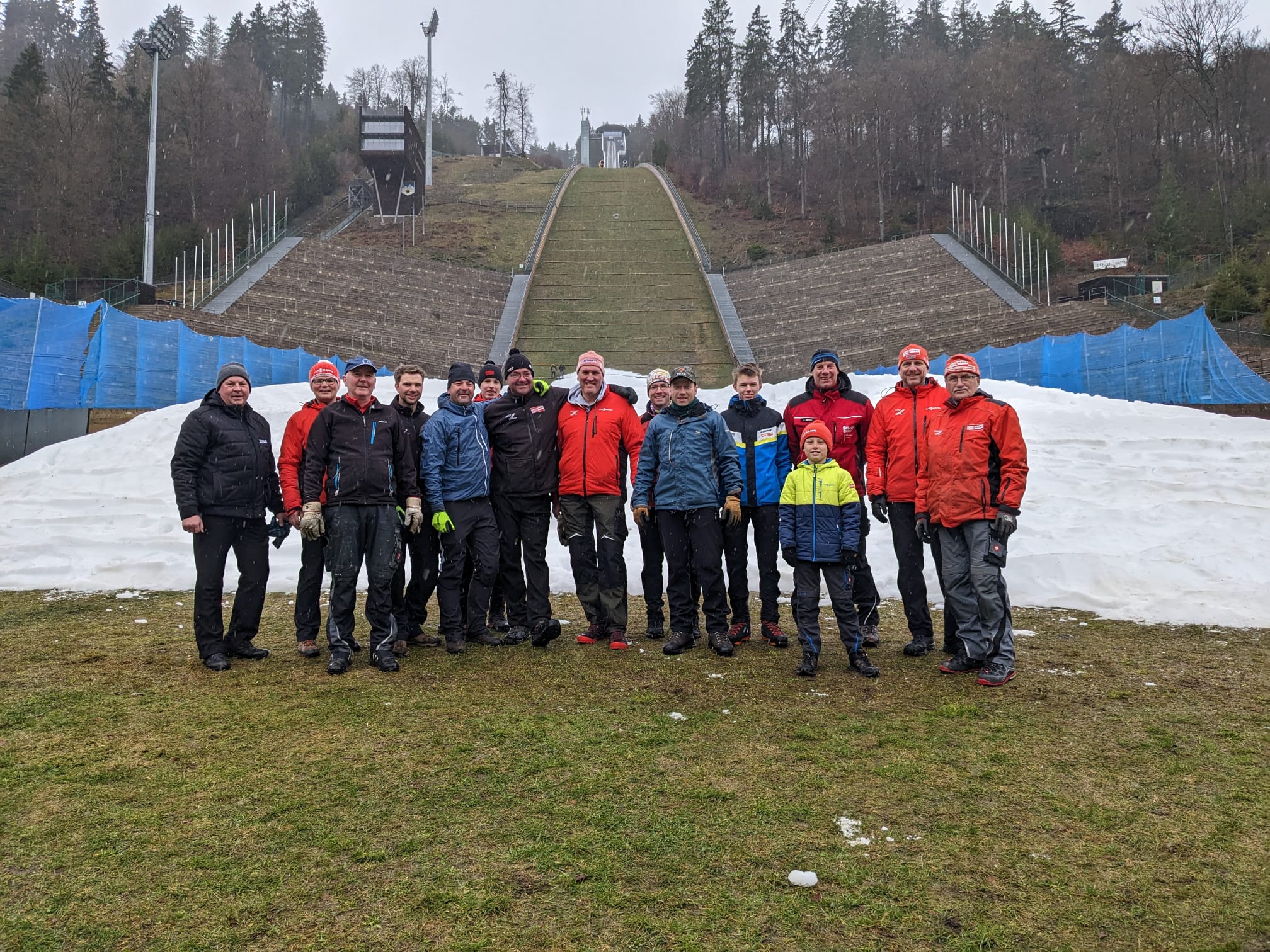 Viele Hände, schnelles Ende: Das war auch am Sonntagvormittag wieder an der Mühlenkopfschanze angesagt, denn knapp 30 Helfer, sie sogenannten Free Willis, waren im Einsatz, um die Schneedepots für das Weltcup-Skispringen, das vom 3. bis 5. Februar 2023 steigt, im Auslauf der Schanze wieder von den Planen zu befreien. Denn: Schnee und kältere Temperaturen haben sich angekündigt. „Es hat alles bestens geklappt und ging super schnell“, sagt Schanzenchef Andy Rohn und fügte an: „Super, dass so viele Helfer mitangepackt haben. Die Planen mussten jetzt runter, weil sich Neuschnee angekündigt hat. Und da besteht sonst die Gefahr, dass man die Planen nicht mehr runter kriegt, weil sie dann viel zu schwer sind.“ Und da die Temperaturen eben zusätzlich in den Minusbereich fallen sollen, sind auch die Kanonen einsatzbereit. „Nächste Woche können wir dann noch einmal zusätzlich Schnee machen, um genug Reserven zu haben.“