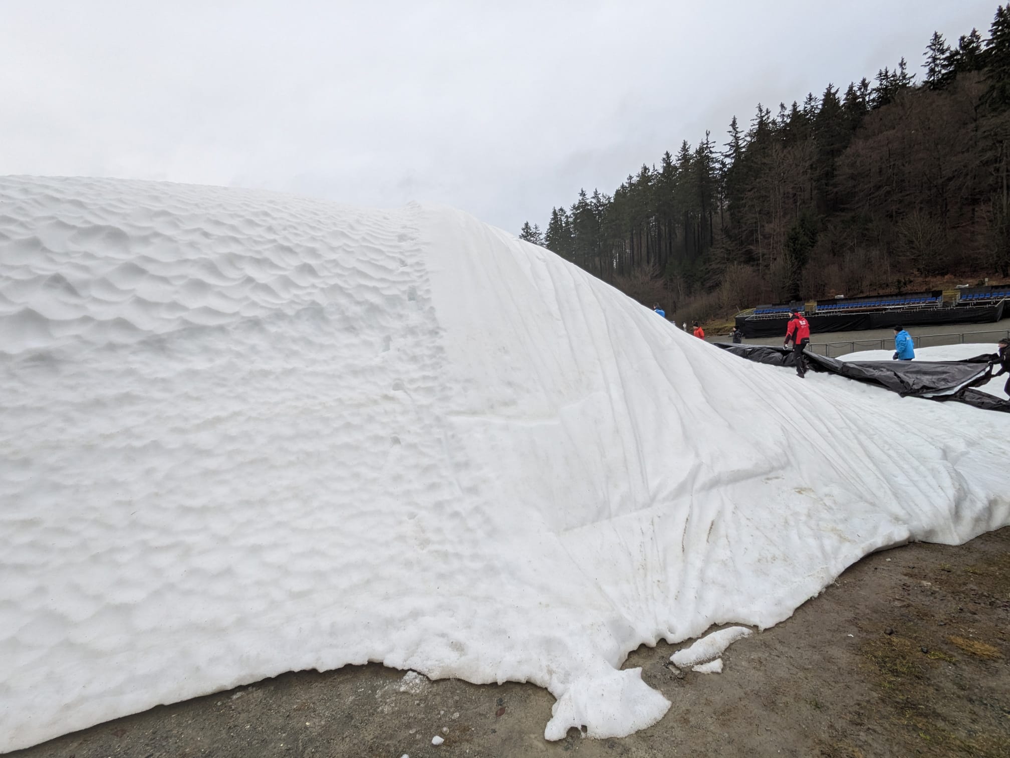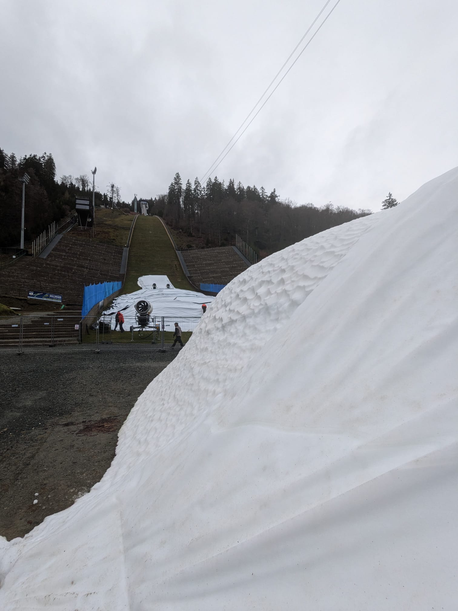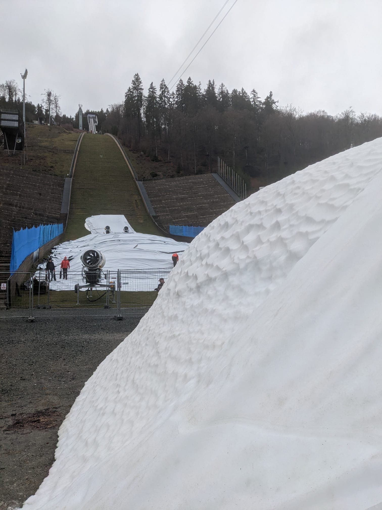 Arbeitseinsatz an der Mühlenkopfschanze - Schneedepots von Planen befreit