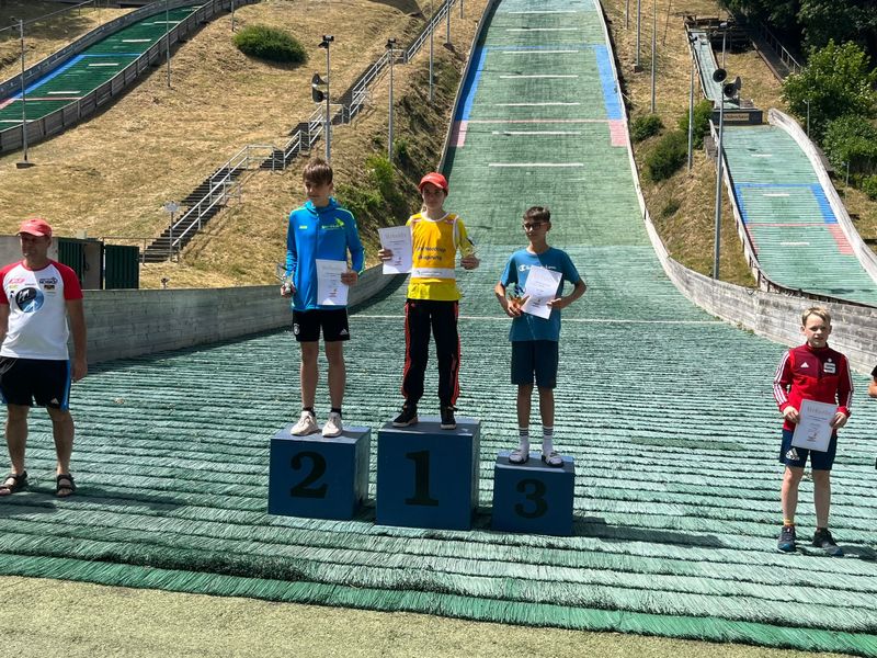 Sommer-Skispringen am Samstag bei 35 Grad: Ludwig Flamme (58,5+66,5 m/216,6 Pkt.) siegt beim Nord Cup in Wernigerode bei den Schülern 14/15 auf der 63-m-Schanze vor Tim Dickas (60,5+64/216,4) und auch Marco Bielau (51+57,5/168,5) verbessert sich im zweiten Durchgang noch auf Platz 16. Am Start waren auch die Talente aus den Skiinternaten im Osten. Jetzt will Trainer Jörg Pietschmann, der schon am Freitag mit seinen Schützlingen angereist war, um noch einmal zu trainieren, bis Juli mit seinen Schützlingen weiter an der Form arbeiten, um bei der Ausscheidung für den FIS Youth Cup in Rastbüchl eventuell auch ähnlich gut gegen die Konkurrenz aus Bayern und Baden-Württemberg zu bestehen. Auch Radu Borca verbesserte sich nach 51 m im zweiten Durchgang nach klarer Aufforderung von Pietschmann auf 58 m und kam bei der Jugend 16/Junioren 17 mit 180,9 Punkten als Neunter noch in die Top Ten. "Er war bei der Hitze nach dem Trainingsdurchgang um 9 Uhr und Wettkampfbeginn 10 Uhr noch nicht ganz mit dem Kopf bei der Sache, muss aber schon bei den Großen mitspringen", so Pietschmann vor der schweißtreibenden Rückfahrt ins Waldecker Upland.