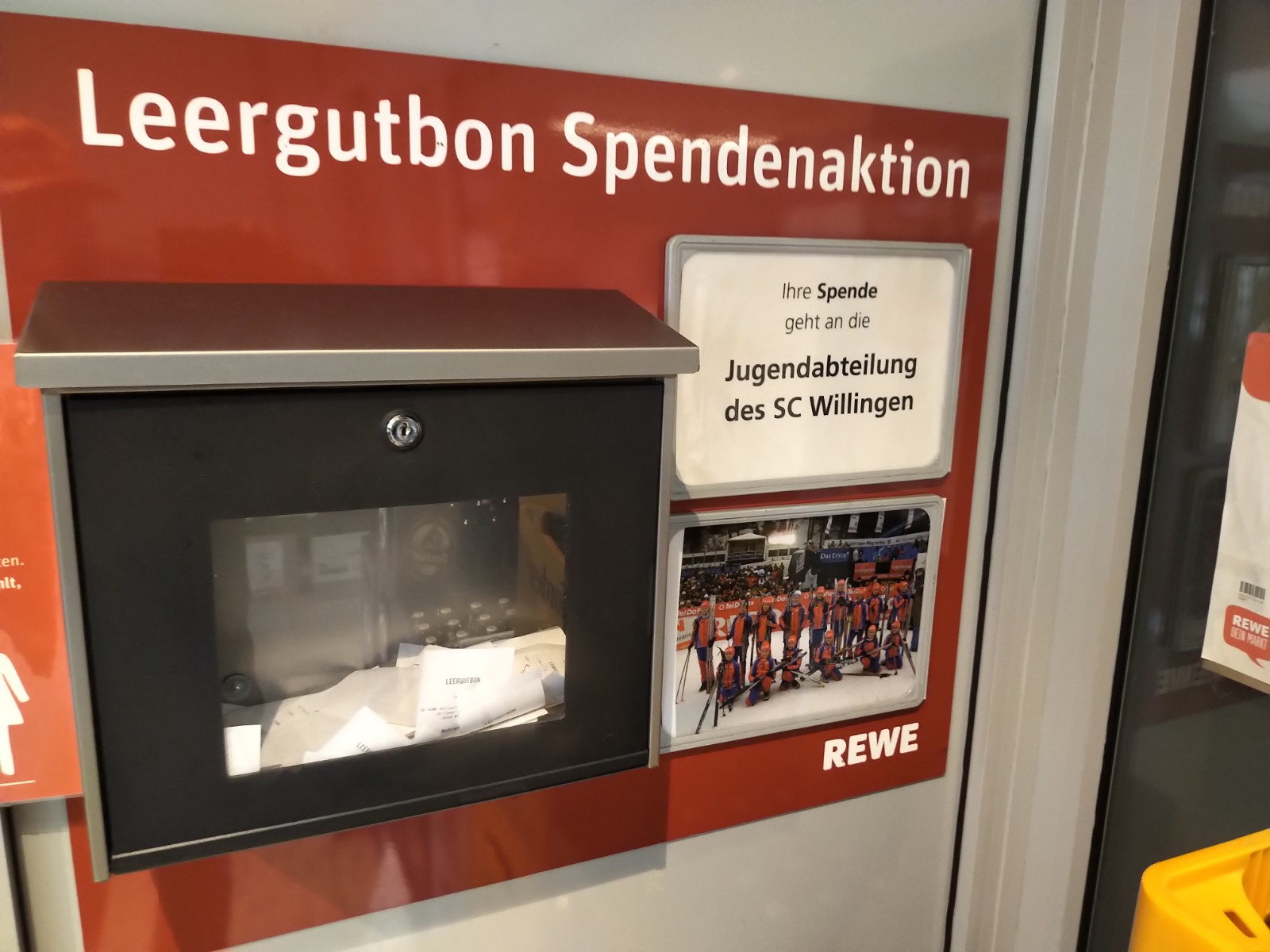 Pfandbon-Aktion im Willinger Rewe-Markt zu Gunsten des Nachwuchses des Ski-Club Willingen