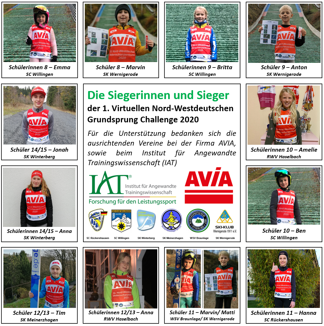 Eine Video-Challenge auf den sechs Heimschanzen: Die Wettkämpfe gliederten sich in verschiedene Teilbereiche auf, in denen Anfahrt, Flughaltung, das zu springende „V“ sowie die Telemark-Landung mit Ausfahrt bewertet wurden. Über sechs Wochen konnten so alle teilnehmenden Nachwuchsspringer ihr technisches Können weiter unter Beweis stellen und dem Endergebnis der während des Sprungs aufgezeichneten Videos entgegenfiebern. Die Auswertung aller Teilelemente erfolgte über das IAT Leipzig (Institut für angewandte Trainingswissenschaft). Insgesamt nahmen an dieser Grundsprung-Wettkampfserie 54 Skispringer und Skispringerinnen aus Hessen, Sachsen-Anhalt, Niedersachsen, Bayern und Nordrhein-Westfalen teil, jetzt wurden die Sieger der jeweiligen Altersklassen bekanntgegeben wurden.