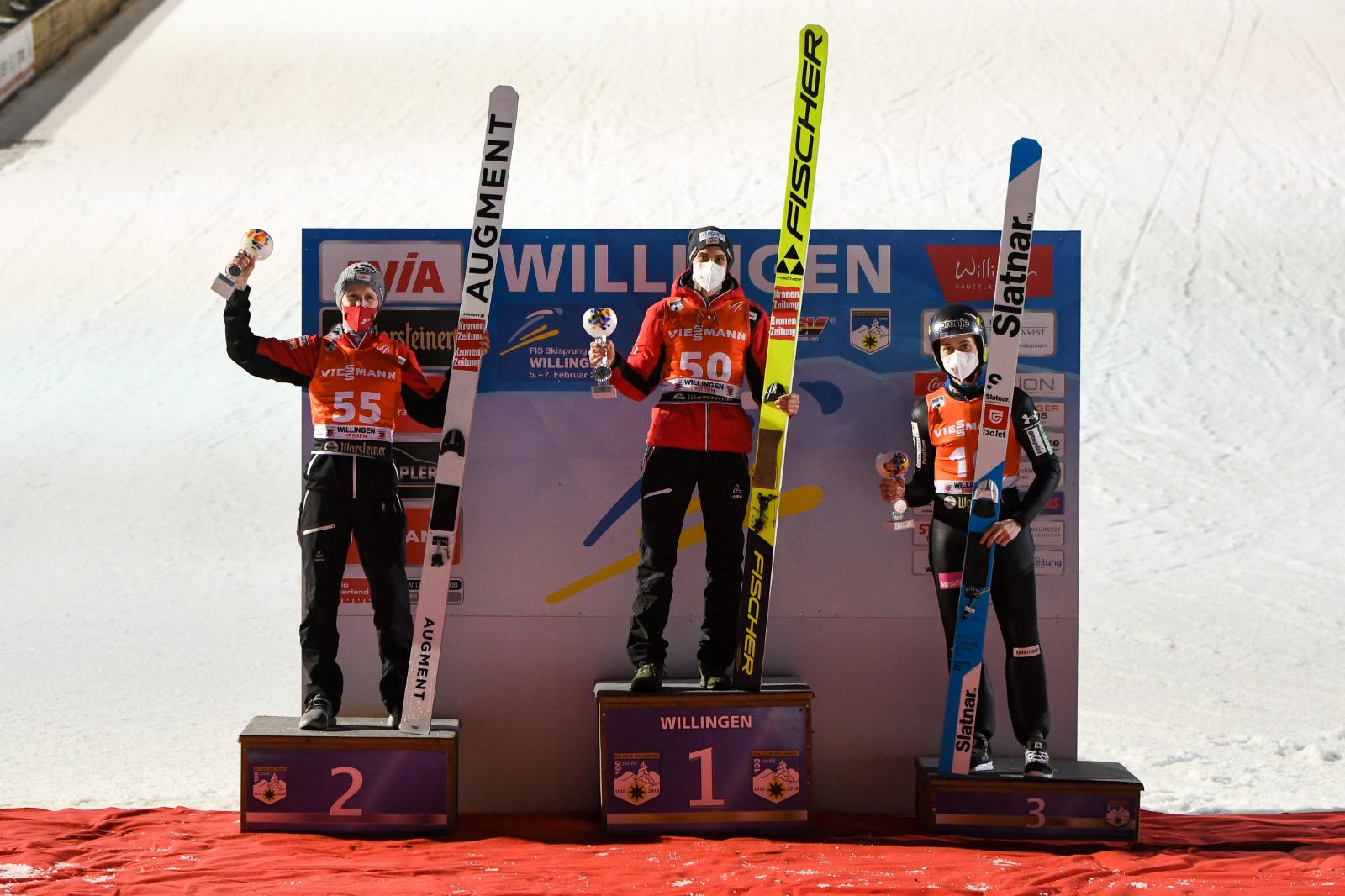 Die beiden ÖSV-Adler Ulrich Wohlgenannt (281,3/144+142,5 m) und Markus Schiffner (249,7/138+132 m) sorgten zum Auftakt der Continental Cup-Wettbewerbe auf der Willinger Mühlenkopfschanze für einen Doppelsieg für die Skispringer aus der rot-weiß-roten Alpenrepublik. Nach seiner Corona-Pause komplettierte Cene Prevc, einer der drei skispringenden Brüder aus Slowenien, mit 138 und 129 m sowie 237,2 Punkten als Dritter das Podest.
