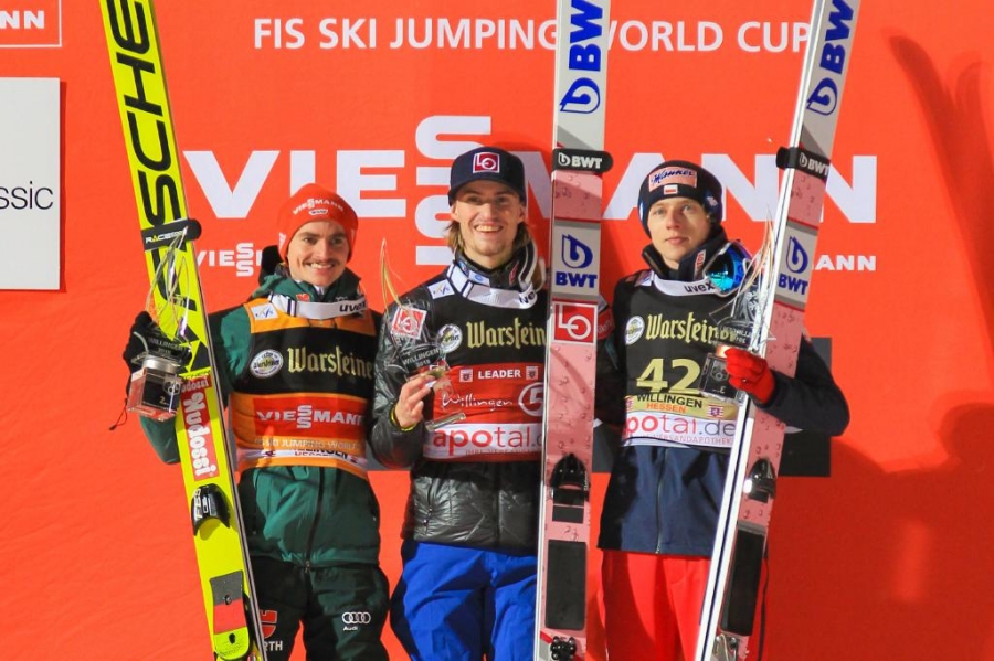 Skiflug-Weltmeister Daniel Andre Tande (261,3) hat sich nach seiner Weltcup-Pause in Zakopane im ersten Einzelwettbewerb des Kult-Weltcups auf der Willinger Mühlenkopfschanze eindrucksvoll zurückgemeldet und gleichzeitig mit 393,0 Punkten die Führung in der neuen Wertung „ Willingen Five“ übernommen. Vor 21.000 Zuschauern im ausverkauften „deutschen Zakopane“ gewann der Norweger einen hochklassigen Wettbewerb mit 20 Sprüngen von 140 m und mehr hauchdünn vor dem deutschen Weltcup-Spitzenreiter Richard Freitag (260,5) und dem Polen Dawid Kubacki (254,8,) der seinen hochgelobten Landsmann Kamil Stoch (254,5) am Tag nach dessen Sieg in der Qualifikation vom Podest stieß und auf Platz vier verwies.
