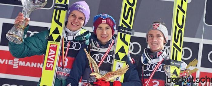 So dürften am Ende auch die DSV-Adler zufrieden sein mit dieser Tournee, obwohl Richard Freitags Träume mit dem Sturz in Innsbruck zerplatzten. So war der Weg für Olympiasieger Stoch frei, der auch die Führung im Gesamtweltcup übernahm und der bisher alles gewonnen hat - bis auf den Weltmeistertitel im Skifliegen, den er jetzt in Oberstdorf gewinnen kann und will.