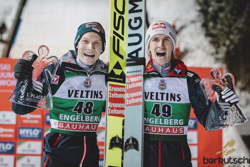 Mit Sprüngen auf 135 und 137,5 Metern sicherte sich Daniel Tschofenig den Sieg beim zweiten Einzel-Weltcup des Wochenendes im schweizerischen Engelberg. Der 22-Jährige führte einen fulminanten österreichischen Dreifachsieg an – hinter Tschofenig belegten Jan Hörl (130 und 138,5 m; 269,7 P.) und Stefan Kraft (135 und 135 m; 268 P.) die Plätze zwei bzw. drei.
