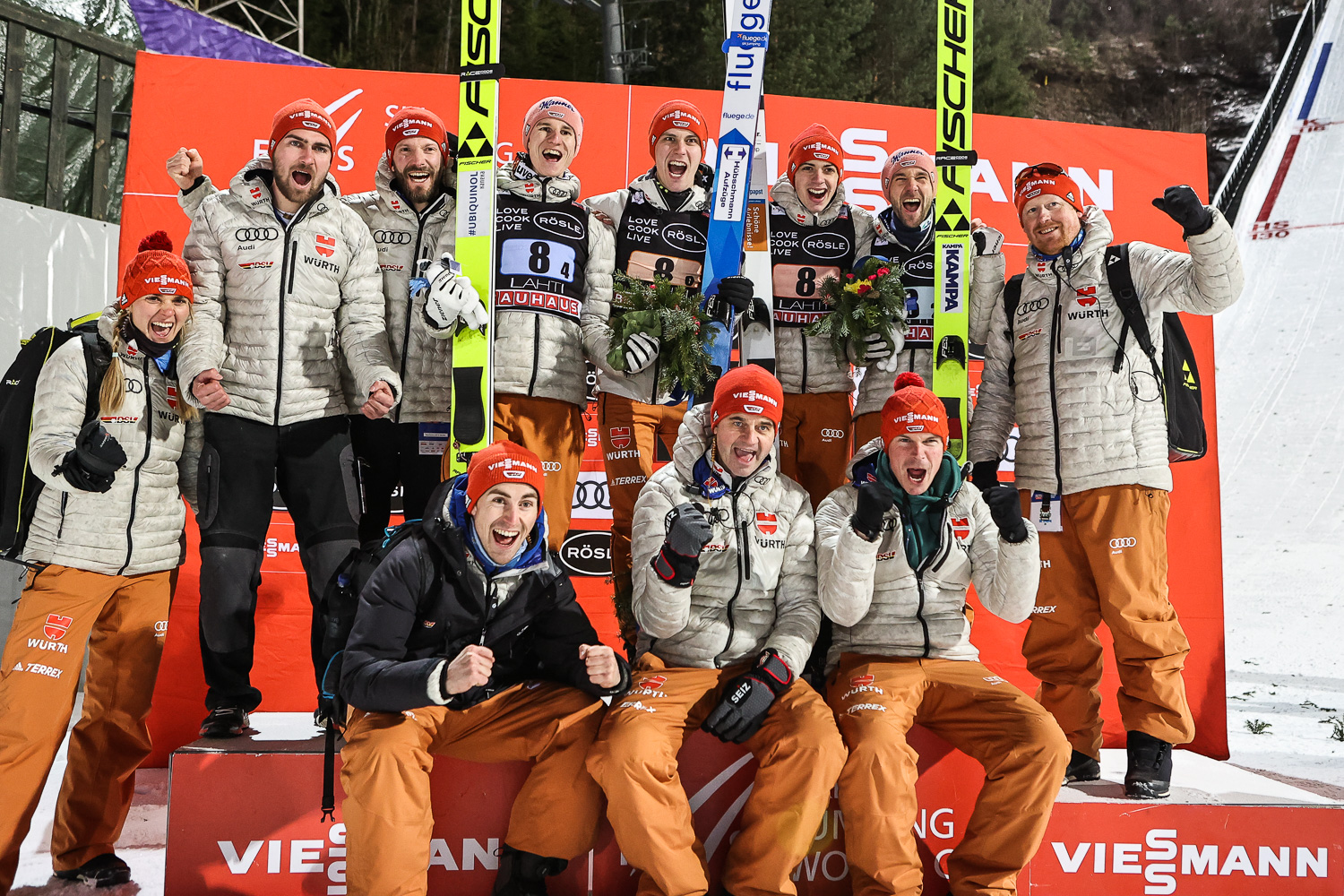 Auch zwei weitere DSV-Adler präsentierten sich am Sonntag - einen Tag nach dem Erfolg im Teamwettkampf - immer noch in Topform. Constantin Schmid belegte nach Weiten auf 121,5 und 126 Metern (254,5 Punkte) den vierten Rang. Stephan Leyhe steigerte sich nach 116,5 Metern im ersten Durchgang im Finale auf 125 Meter und kletterte damit auf einen starken fünften Platz. Im Gesamtweltcup ist der SCW-Athlet weiterhin Siebter, hat aber den sechstplatzierten Norweger Marius Lindvik, der als 42. nach einem Sprung ausschied, bei nur sechs Punkten Rückstand im Blick.