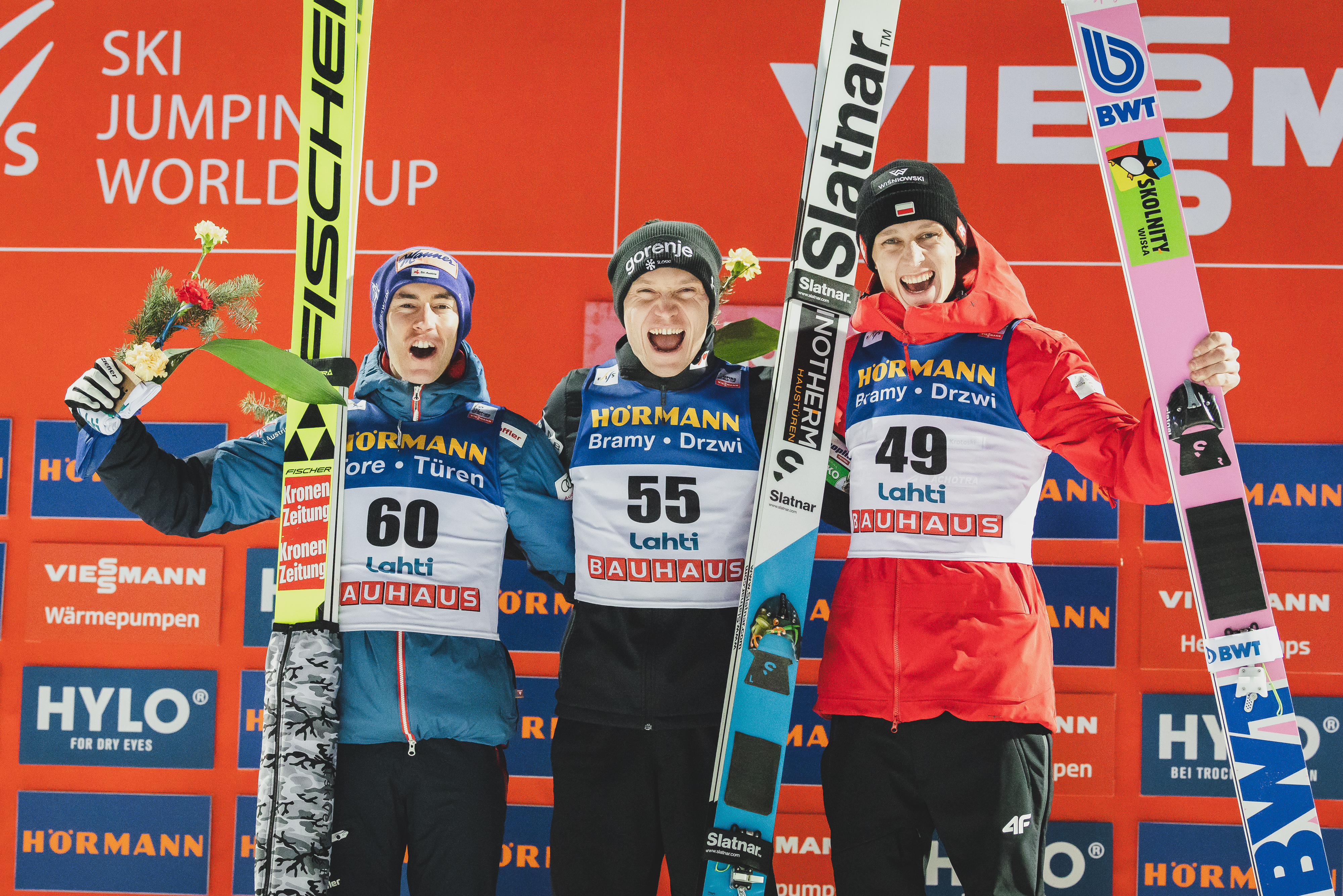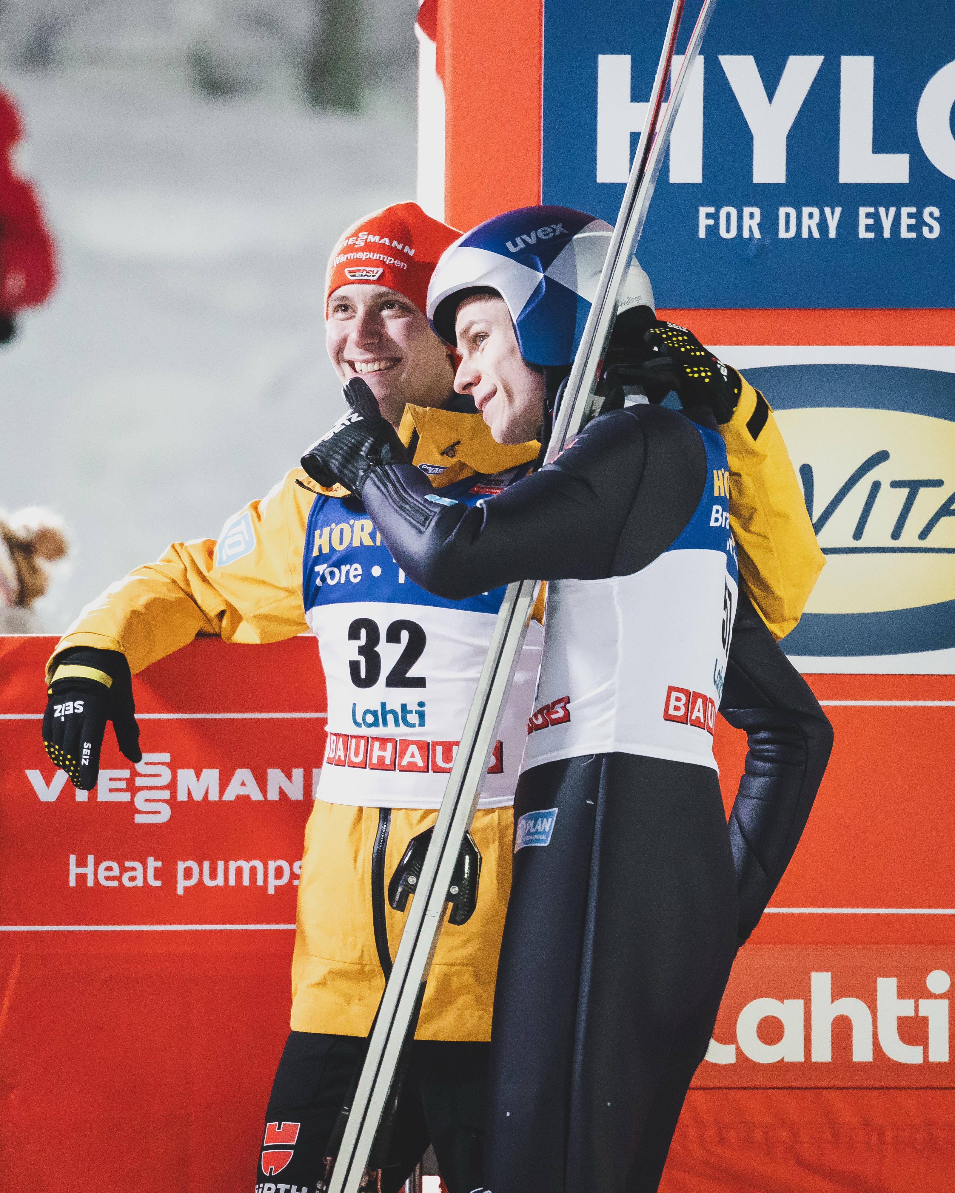Stephan Leyhe wurde am Exit Gate von FIS-Renndirektor Sandro Pertile höchstpersönlich empfangen, der ihm mit seinem Händedruck ebenfalls Hochachtung zollte. Dann nahm er seine Freunde Karl Geiger (13.), Pius Paschke (12.), Philipp Raimund (5.) und Andreas „Andi“ Wellinger (6.) nach deren Finalsprüngen im Auslauf in die Arme. Die langjährigen Weggefährten strahlten dabei um die Wette. Was für schöne Bilder, die um die Welt gingen. Sportlich setzte Anze Lanisek aus Slowenien ein dickes Ausrufezeichen. Schon nach dem ersten Sprung lag er nach 131 Metern souverän in Front und machte den Sieg im Finale mit 128 Metern und 276,9 Punkten perfekt. Der erste Weltcup-Saisonsieg für den Team-Weltmeister. Zweiter wurde der Österreicher Stefan Kraft (127,5+126,5 Meter/270,8 Punkte). Sein erstes Karrierepodest feierte der Pole Pawel Wasek (127+127,5/263,9) als Drittplatzierter. Das gute deutsche Mannschaftsergebnis bildete den würdigen Rahmen zum Abschied von Stephan Leyhe, den „wir alle sehr vermissen werden“ (Tom Bartels). Morgen nach dem Super-Team-Wettbewerb mit jeweils zwei Skispringer pro Team soll dann nach dem Weltcup der dann tatsächlich letzte Sprung von Stephan stattfinden. Eine große Ehre, die ihm zu Teil wird, wenn die langjährigen Kollegen aus den verschiedenen Nationen im Auslauf für das Ski-Club-Idol Spalier stehen wollen. Ein weiterer Moment einer langjährigen Karriere, den Stephan Leyhe nie vergessen wird.