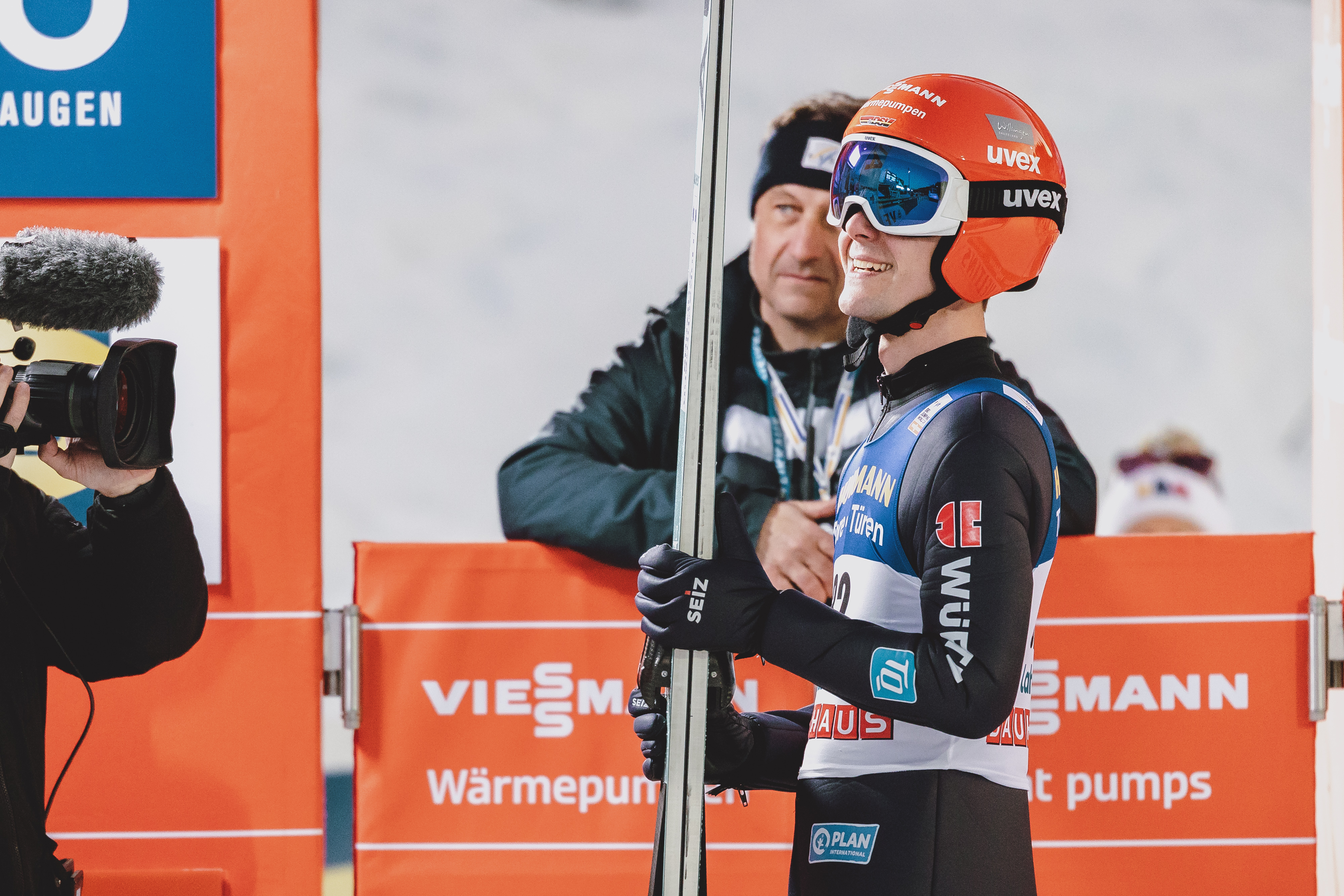 Lea Wagner interviewte auch Vater Volker und Stephans ersten Trainer Jörg Pietschmann. „Irgendwann musste der Moment mal kommen, ich bin 27 Jahre mit Stephan durch die Gegend gefahren, das ist heute nicht ganz einfach“, offenbarte ein sehr wehmütiger, aber stolzer Papa. Und Jörg Pietschmann bekräftigte, dass „Stephan für den SC Willingen einzigartig“ war, unser Botschafter, ein solider super Arbeiter, der für das Team immer alles gegeben hat.“ Auch Stephan nahm sich zwischen den Durchgängen die Zeit für das Live-Interview auf der Presenter-Position im Fernsehen. Er sei noch immer „voll im Flow“, weil er natürlich im Wettkampf immer ehrgeizig sei. „Ich darf nochmal runter, darüber freue ich mich sehr, ich werde meinen letzten Sprung im Wettkampf genießen“, sagte Stephan Leyhe.