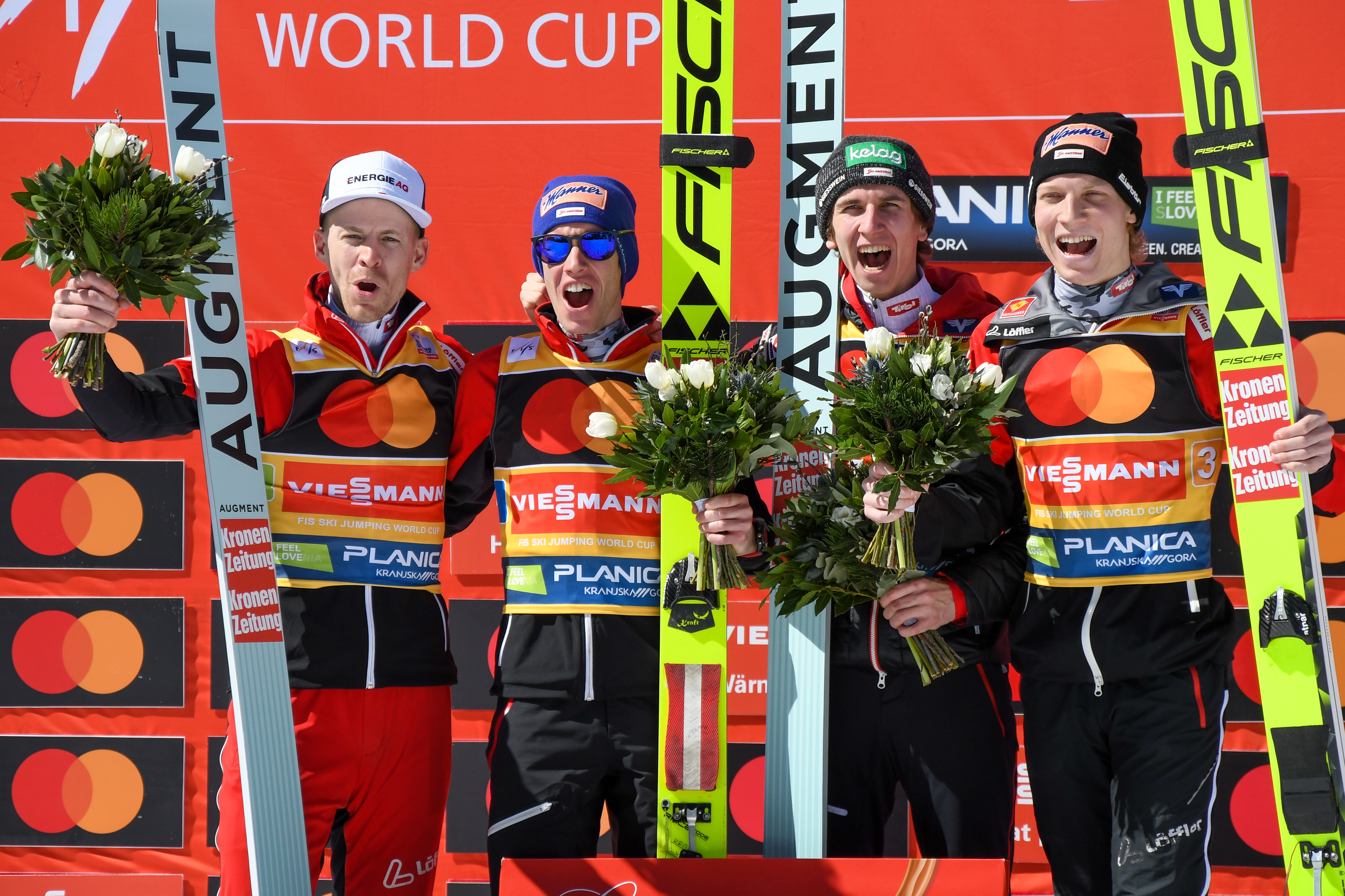 Daniel Tschofenig, Michael Hayboeck, Jan Hoerl und Schluss-Springer Stefan Kraft gewannen dann nur wenig später den Team-Wettkampf mit 1.688,7 Punkten nur 6,1 Zähler vor Slowenien und 33,5 vor Norwegen.