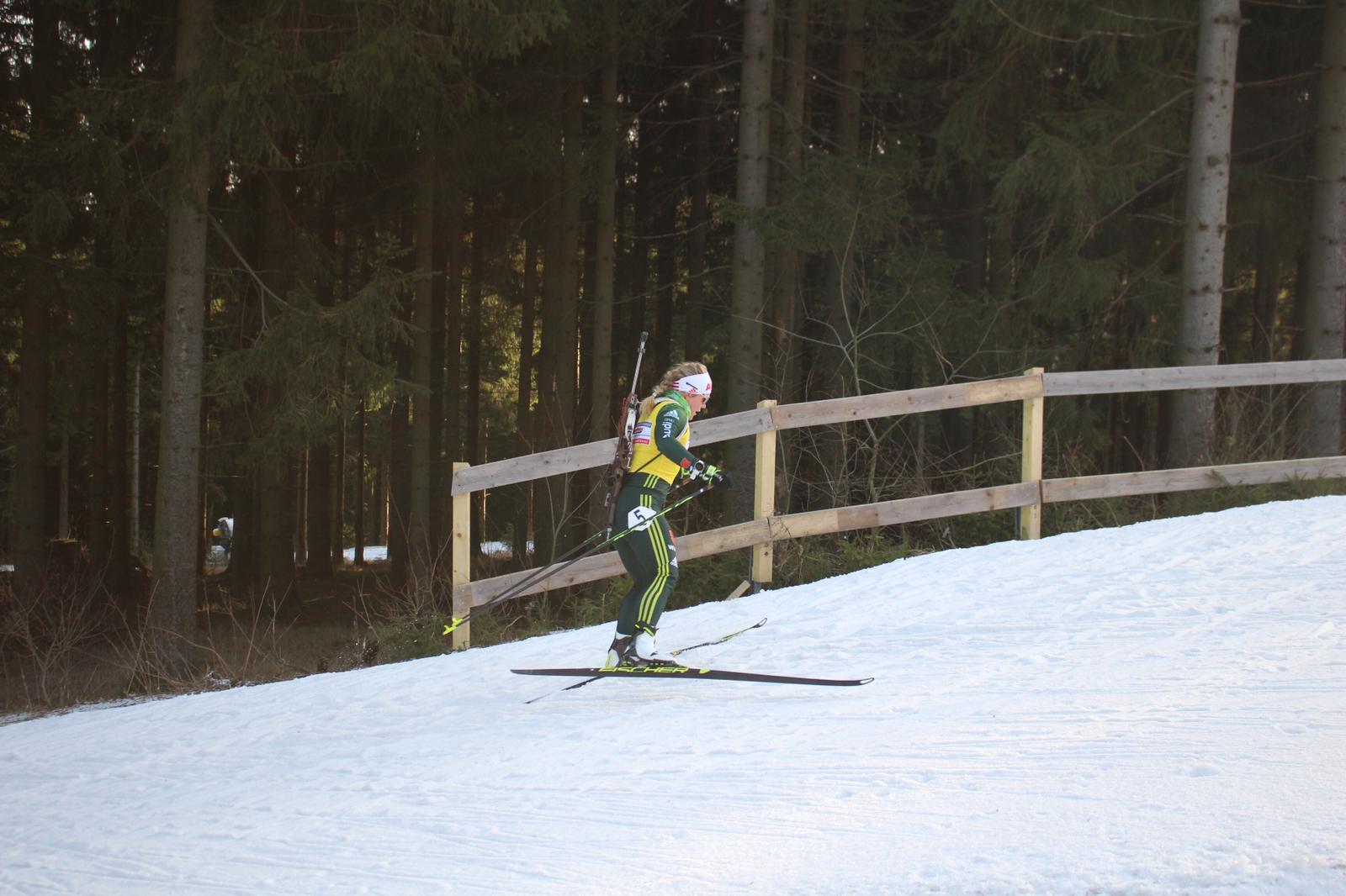 Bei der Jugend II über sechs Kilometer verfehlte Hannah Möller je Anschlag zwei Scheiben und wurde nach 24:41,1 Minuten Elfte des 24-köpfigen Feldes. Es gewann Lena Hartl (SC Vachendorf; 23:19,9/2 Fehler). In der Verfolgung über zehn Kilometer kämpfte sich Hannah auf Rang sechs vor – fünf Fehler und eine Zeit von 35:03,9 Minuten wurde für sie gestoppt. Anna Laube (WSV Oberhof/4 Feler) hieß nach 33:21,8 Minuten die Siegerin der Jugend II.