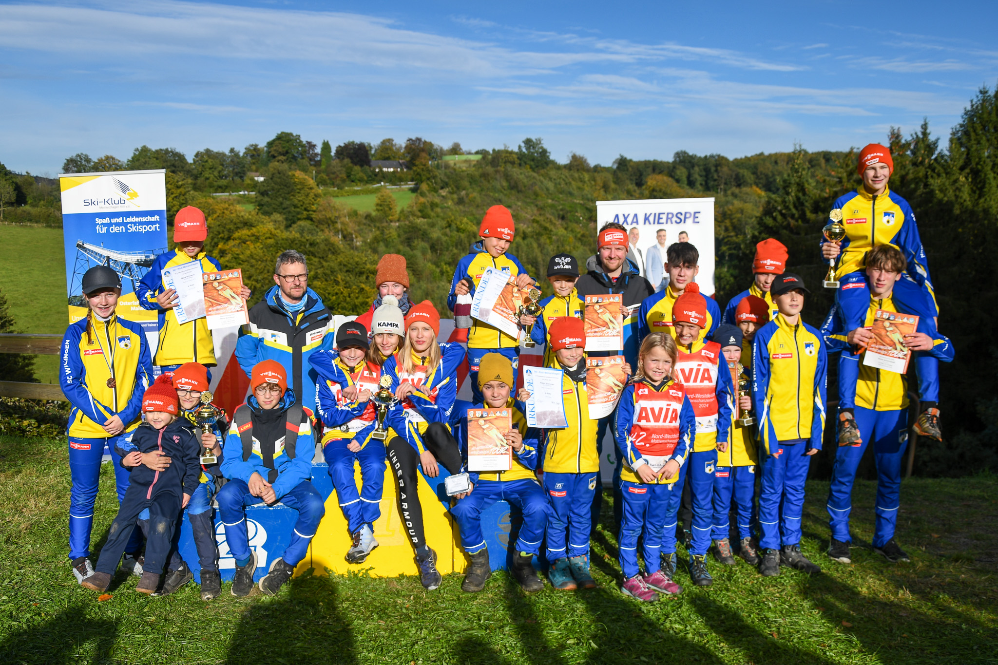 Nach Winterberg und Meinerzhagen ging es zum Abschluss der 42. Nordwestdeutschen Mattenschanzentour, die insgesamt sechs Stationen in Hessen, Nordrhein-Westfalen, Sachsen-Anhalt und Niedersachsen umfasst. Die Willinger Sportlerinnen und Sportler, die von Jörg Pietschmann, Daniel Luckey und Pascal Steinert betreut wurden, hatten allen Grund zur Freude. Mit guten Sprüngen – sogar mit einem neuen Schanzenrekord – fuhren sie hervorragende Ergebnisse und zahlreiche Punkte in der Tages- und Gesamtwertung ein. Zum Tournee-Finalwochenende präsentierte sich der Herbst im Sauerland von seiner goldenen Seite: Ein immer mehr aufklarender Himmel und wenig Wind sorgten für passende Bedingungen. Der Ski-Club Willingen stellte 19 der rund 70 Teilnehmer. Auch aus Bayern, Sachsen und Thüringen waren Sportler angereist, um sich auf den Deutschen Schülercup vorzubereiten, der in zwei Wochen in Winterberg stattfindet. Von Sprüngen auf der 10-Meter-Schanze bis hin zur St.-Georg-Schanze, auf der Weiten über 80 Meter möglich sind, war alles dabei.