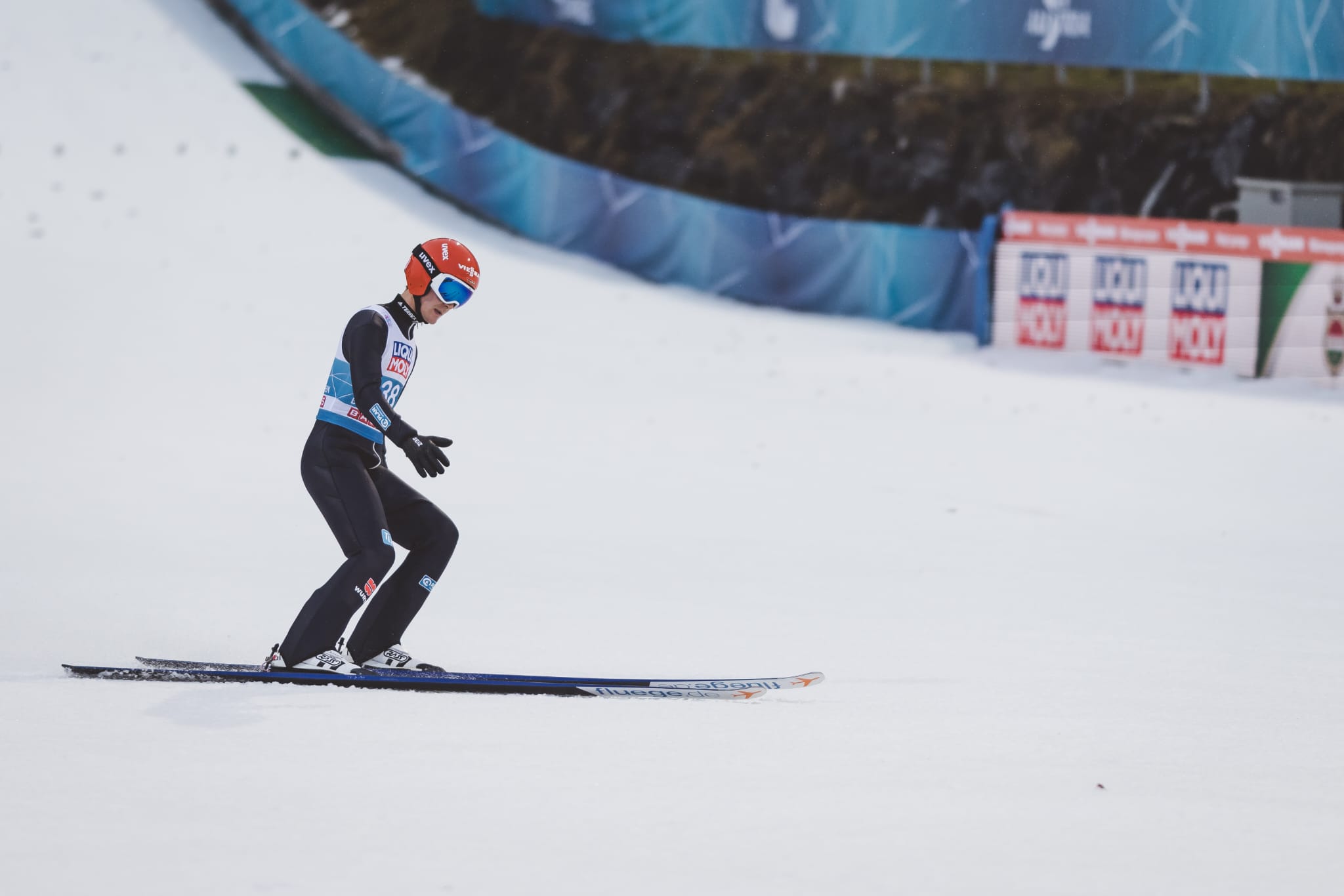 Beim überraschenden Sieg des Österreichers Daniel Tschofenig (149,1) vor Polens Dawid Kubacki (145,2) und dem besten Slowenen Anze Lanisek (142,4) war Olympiasieger Andreas Wellinger (142,2) als Vierter bester Deutscher. Karl Geiger (135,4) sprang auf Platz 10, Markus Eisenbichler (129,6) auf Platz 14.