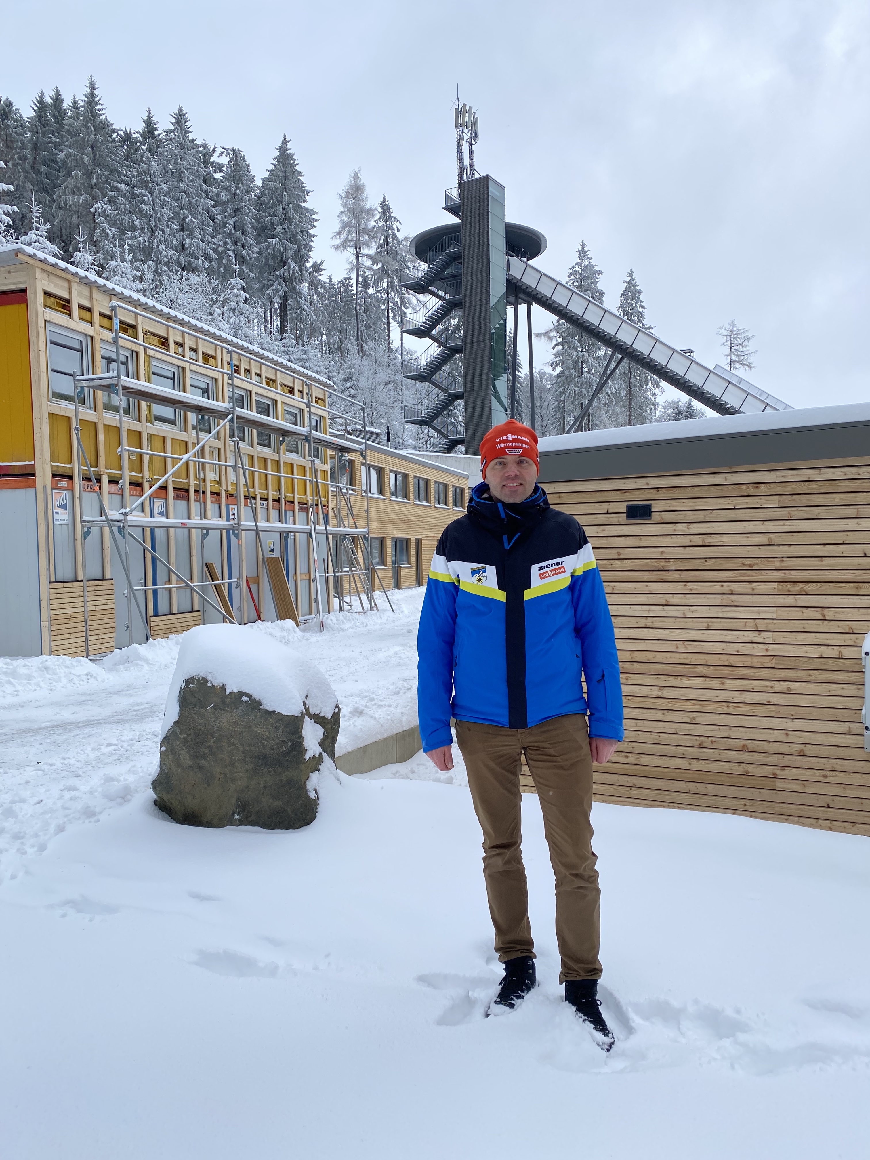 Rund um den Anlaufturm an der Willinger Mühlenkopfschanze geht’s derzeit noch recht wuselig zu, denn dort, wo sonst jedes Jahr zum Weltcup-Skispringen gut 50 Container als Springerlager aufgebaut werden, sind zwei neue Gebäude entstanden.
