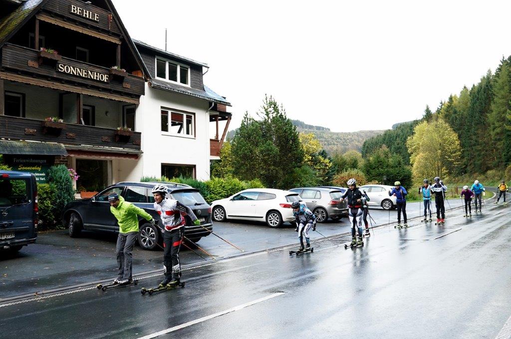 Insgesamt 15 Mitglieder und Freunde des xcski.de A/N-Skimarathon-Teams trafen sich zu ihrem Herbstlehrgang in Willingen – im Hotel Sonnenhof von Teammitglied Florian Göbel, der das ehemalige Elternhaus von Jochen Behle weiter führt und ebenfalls noch im Skilanglauf unterwegs ist. Man wollt sich den Schliff vor der neuen Skimarathon-Serie holen und war erstaunt über die nahezu optimalen Trainingsmöglichkeiten in der Heimat Behles, des Langlauf-Klassikers („Wo ist Behle?“) und früheren Bundestrainers. Obwohl das Wetter am Rande des Sauerlandes nicht unbedingt mitgespielt hatte, gehörte auch die Mühlenkopfschanze zur Schweißarbeit der Skilangläufer um Thomas Freimuth. Auf dem Programm standen aber nicht nur Training, sondern auch ein Update bezüglich Materials und erste Gespräche über die Wettkampfplanung im Winter. Die ersten Rennen können kommen, war man sich am Ende einig und lobte die Gastfreundschaft Göbels und seines Hotel-Teams.