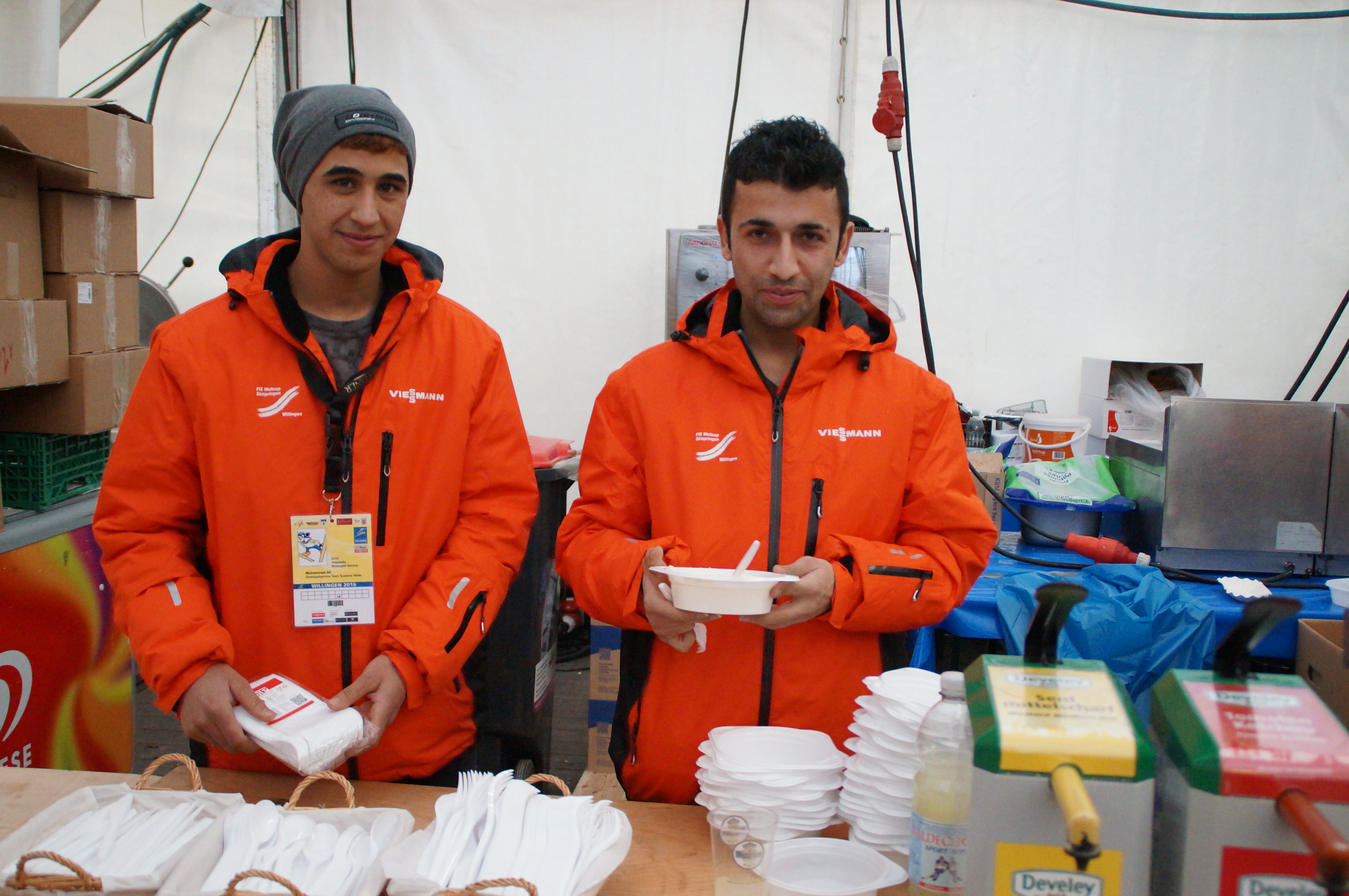 Seit vier Monaten sind sie in Deutschland, beim Willinger Kultweltcup schon als freiwillige Helfer im Einsatz: Mohammad Ali Fayyadh Sabr (20) und Rawand Jat (25) standen am Verpflegungsstand im großen Zelt ihren Mann und erhielten viel Lob als „Free Willis“ des Ski-Clubs.