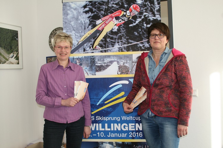 Noch 100 Tage bis zum „Kult-Weltcup“ im Skispringen auf der Mühlenkopfschanze in Willingen und der Ticketverkauf läuft auf Hochtouren. " Wer noch Sitzplätze haben will, sollte sich sputen!", erklärte Ticket-Managerin Christine Hensel (Foto: C.Hensel & Kollegin Elke Rischen) zu dem Ansturm. Das Comeback von Severin Freund und der Auftritt von Lokalmatador Stephan Leyhe elektrisieren offenbar schon jetzt die Fans.