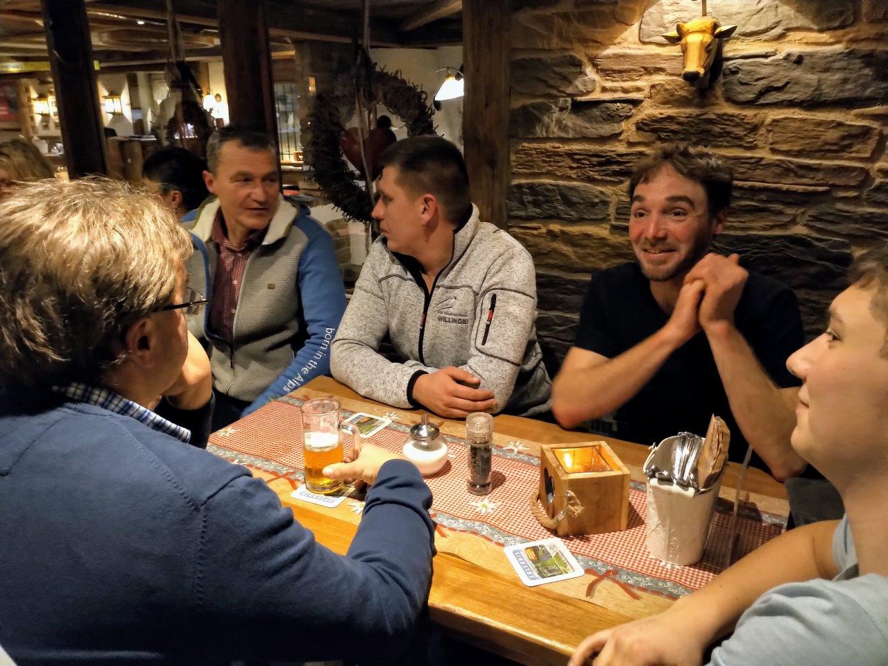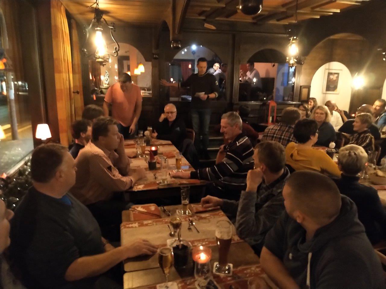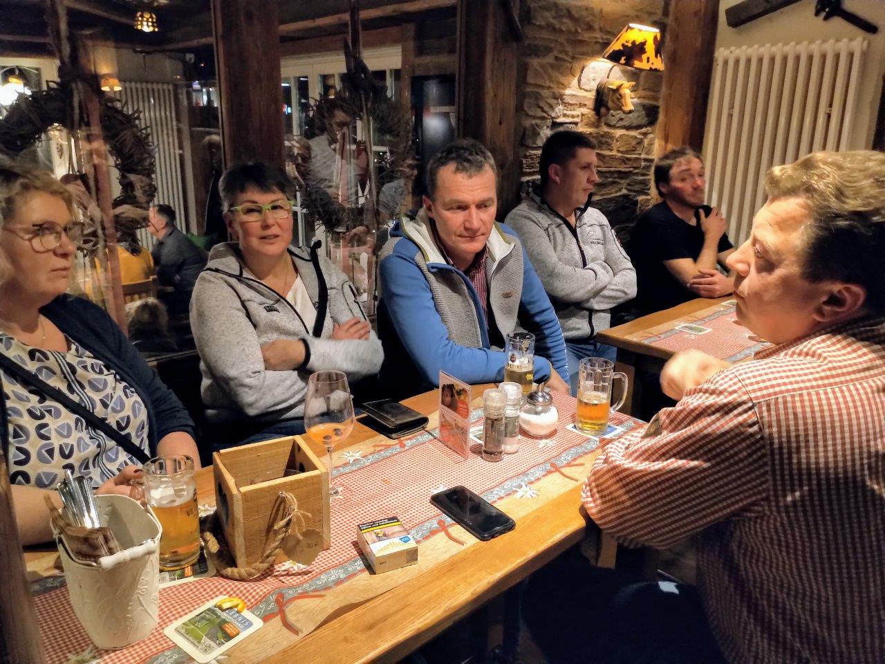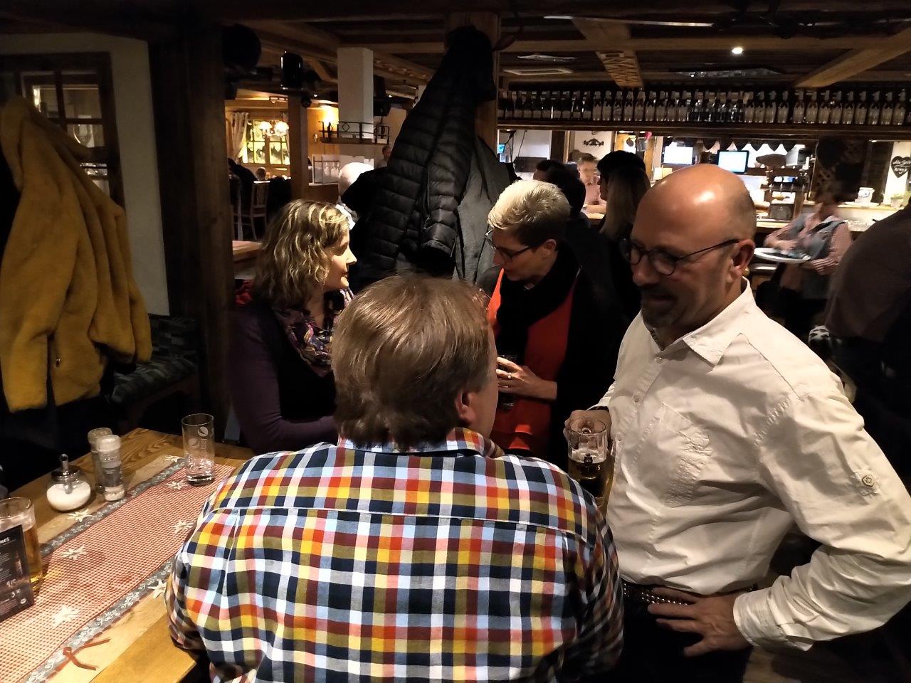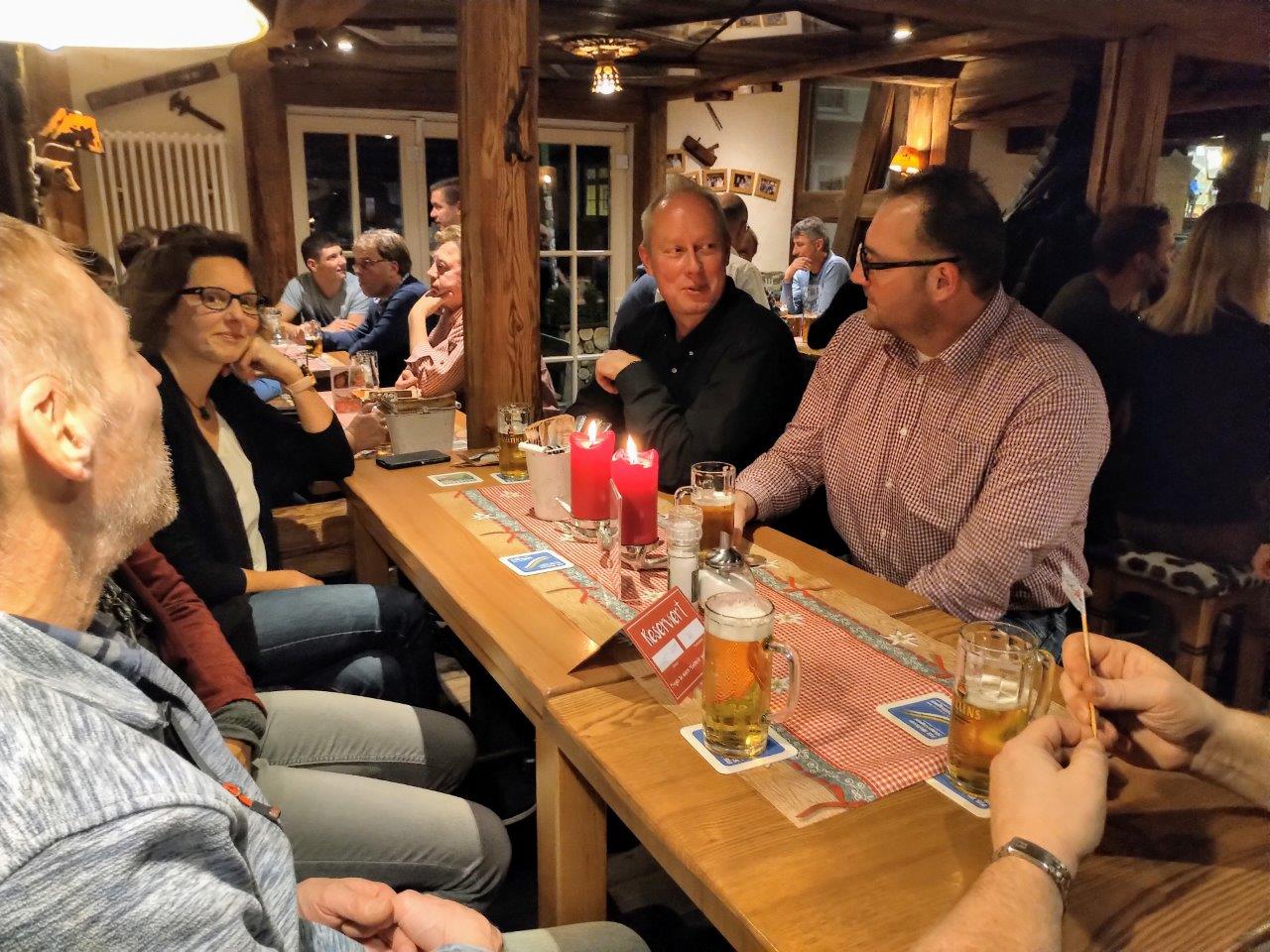 Die Dorfalm und das Vereinslokal Café Müller waren die Stationen der kleinen Weihnachts-Rallye, bei der Vorstand und Vereinsausschuss sich traditionell bei den Trainern und Angestellten bedankten und im Kreis der rund 35 Personen, darunter erstmals auch Heike Bienstein, der Geschäftsführerin der Leistungssport gGmbH WSV/HSV, einige besinnliche und gemütliche Stunden gemeinsam verbrachten. Nach einem Begrüßungsgetränk und einer kleinen Vorspeise ging es zu Fuß weiter zu „Bäckes“, wo der Hauptgang und die Nachspeise gereicht wurden. Präsident Wilhelm Saure mit einer Nikolausgeschichte und Fuchsfachwart Stefan Kesper mit einem Weihnachtsgedicht sorgten für die notwendige Advents-Stimmung in der fröhlichen Runde, dort wo jeweils dienstags die Ski-Club-Sitzung ansteht, die in den nächsten Wochen angesichts des bevorstehenden Weltcup-Jubiläums immer mehr an Bedeutung gewinnen und positiven Stress mit sich bringen wird. Mit einem Christinen-Stollen vom Café Müller hatte der Ski-Club sich bereits postalisch bei vielen auswärtigen Freunden und Gönnern zur Weihnachtszeit bedankt und einen „Guten Rutsch“ gewünscht!