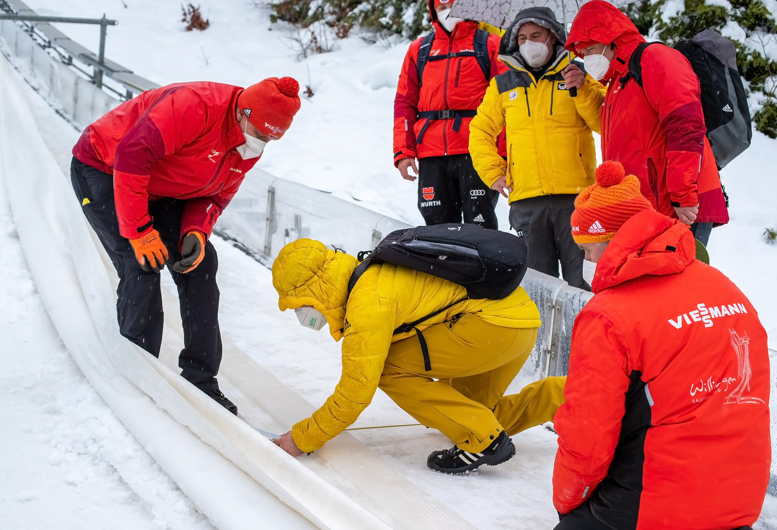 Der Technische Delegierte der FIS, Saso Komovec aus Slowenien, und sein Assistent Hubi Mathis aus der Schweiz, haben am Donnerstag die Mühlenkopfschanze für den FIS Skisprung-Weltcup von Freitag bis Sonntag mit dem neuen Modus „Willingen/6“ offiziell abgenommen. Rennleiter Volkmar Hirsch präsentierte dem Duo die größte Großschanze der Welt, die das Team um Schanzenchef Andi Rohn, dem Chef Absprung Sebastian Szlachta mit ihren bewährten Teams bestens präpariert hatten. Anlauf und Aufsprunghang waren top in Schuss. Komovec kennt die Mühlenkopfschanze noch als aktiver Springer vom Europacup 1994, ein Jahr vor der Weltcup-Premiere. Mathis ist als Schanzenchef in Engelberg ein anerkannter Experte.